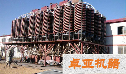 螺旋槽主要应用于有足够比例混合物的铁矿、钨矿、锡矿、钽矿、铌矿、金矿、煤矿、金刚石、独居石等物料的分级,物料尺寸一般在0.3-0.02mm之间。